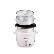 Deze rijstkoker heeft een inhoud van 1,8 liter. Dat is genoeg rijst voor het hele gezin. Hij is voorzien van 2 indicatielampjes. Eentje voor het koken van de rijst en een voor het warmhouden. Je verbindt hem met een stopcontact door de afneembare stroomkabel. Hij heeft een aluminium binnenpan met anti-aanbaklaagje en een glazen doorkijkdeksel met stoomgaatje.