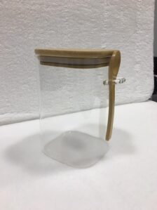 - Stevige glazen vierkant voorraadpotten.