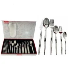 De set bestaat uit 6* menu messen 6* menu vorken 6* menu lepels 6* koffie lepels 6* theelepels 6* dessertvorkjes